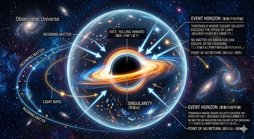 事象の地平線は、存在の定義そのものを揺さぶる境界なんです。