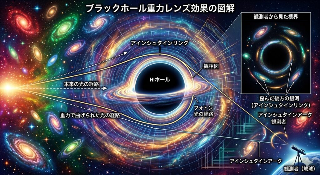 ブラックホールの周囲では、空間そのものが大きく歪んでいます。